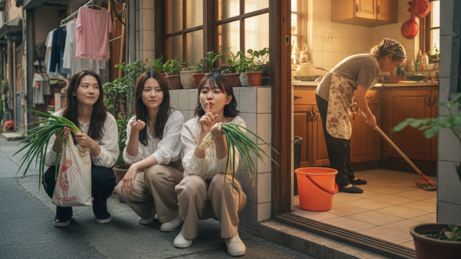 And yet, Auntie sighs. Because wrapped in this delicious mischief is the familiar old story: women’s bodies as vessels of expectation. Those stolen spring onions—cōng (蔥), with all their clever wordplay and virile symbolism—were not about pleasure for pleasure’s sake. They were about fertility, pregnancy, producing heirs, and keeping lineages alive. Even fun had a reproductive deadline. Enjoy your laughter, dear, but don’t forget why you’re here.