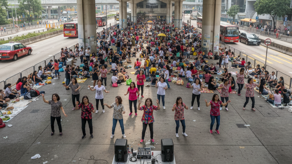 Every Sunday, the polished glass towers and solemn façades of Central, Hong Kong’s financial heart—home to HSBC lions and luxury boutiques—give way to a vibrant “takeover” powered by tens of thousands of female migrant workers, transforming sidewalks, plazas and footbridges into a sprawling, women-only social world that pulses with laughter, prayer, music and community. What looks like an impromptu street festival is in fact a weekly ritual of space-making and self-expression, a brief but breathtaking inversion of one of Asia’s most intense urban landscapes.