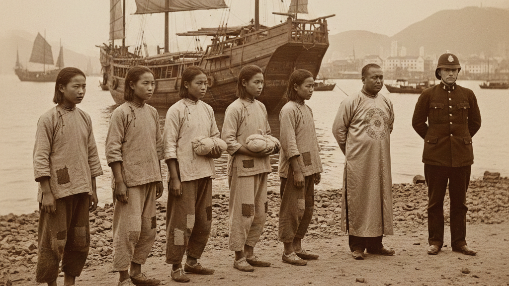 In the shadowy underbelly of Asia’s most prosperous colonial ports, a gendered trade flourished long before the term “human trafficking” entered law books or public conscience. From the late eighteenth through the nineteenth century, thousands of women and girls from mainland China were moved—sold, transferred, or coerced—into the booming colonial cities of Hong Kong, Macau, and Singapore. What later generations would associate with triads and organized crime began instead as a tolerated commercial system run by clan brokers, transport middlemen, brothel owners, and protection groups, operating with the knowledge—and often the studied silence—of colonial institutions.