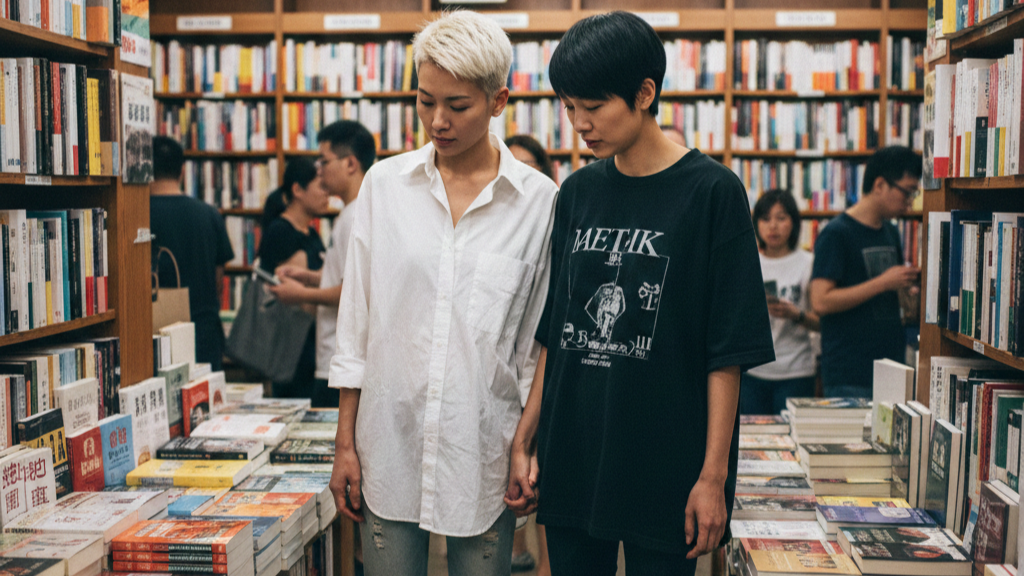 The women who circulate in HeHe spaces often share a recognisable but understated look. This is not the hard-edged butch of Western lesbian mythology, nor the hyper-femme counterpoint that sometimes accompanies it. HeHe style leans soft-butch: short or neutral haircuts, loose shirts, jeans, sneakers, minimal makeup, a posture that signals quiet confidence rather than confrontation. It is a gender expression that reads, to outsiders, as practical or slightly tomboyish—well within the acceptable margins of Hong Kong femininity. Nothing about it screams rebellion, which is exactly why it works.