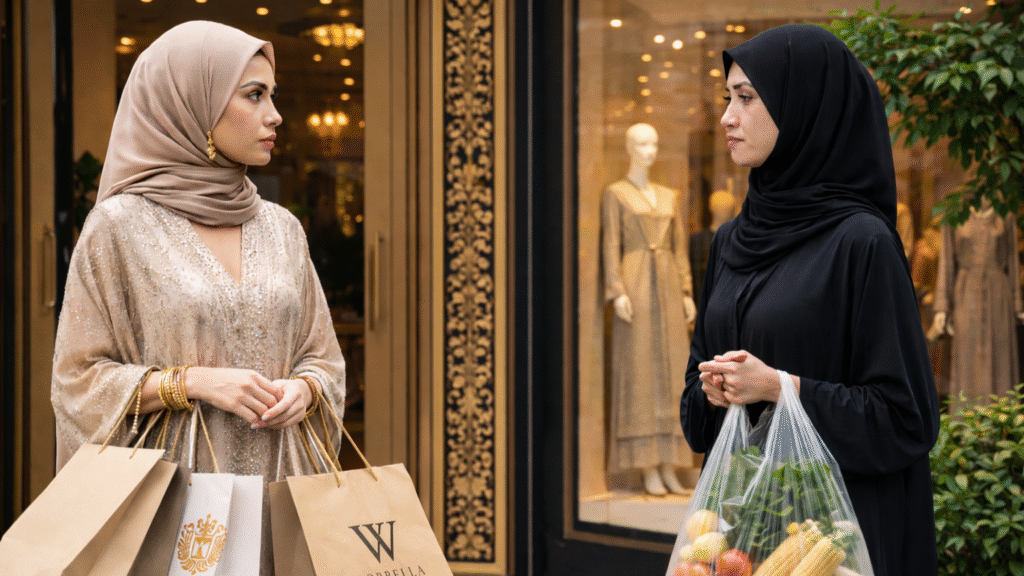 Which brings us to the contradiction at the heart of your theme: luxury “Muslim” fashion. The hijab and modest dress are often framed, in Islamic ethics, as practices aligned with humility and restraint. Yet the Ramadan fashion boom includes precisely the opposite energy: exclusivity, premium pricing, status signaling—sometimes delivered in the soft, polite language of “quiet luxury.” A silk abaya can be cut to flow modestly while still performing wealth through fabric, finish, and brand aura. Even when logos are minimal, the message can be loud: not “look at my body,” but “look at my access.”